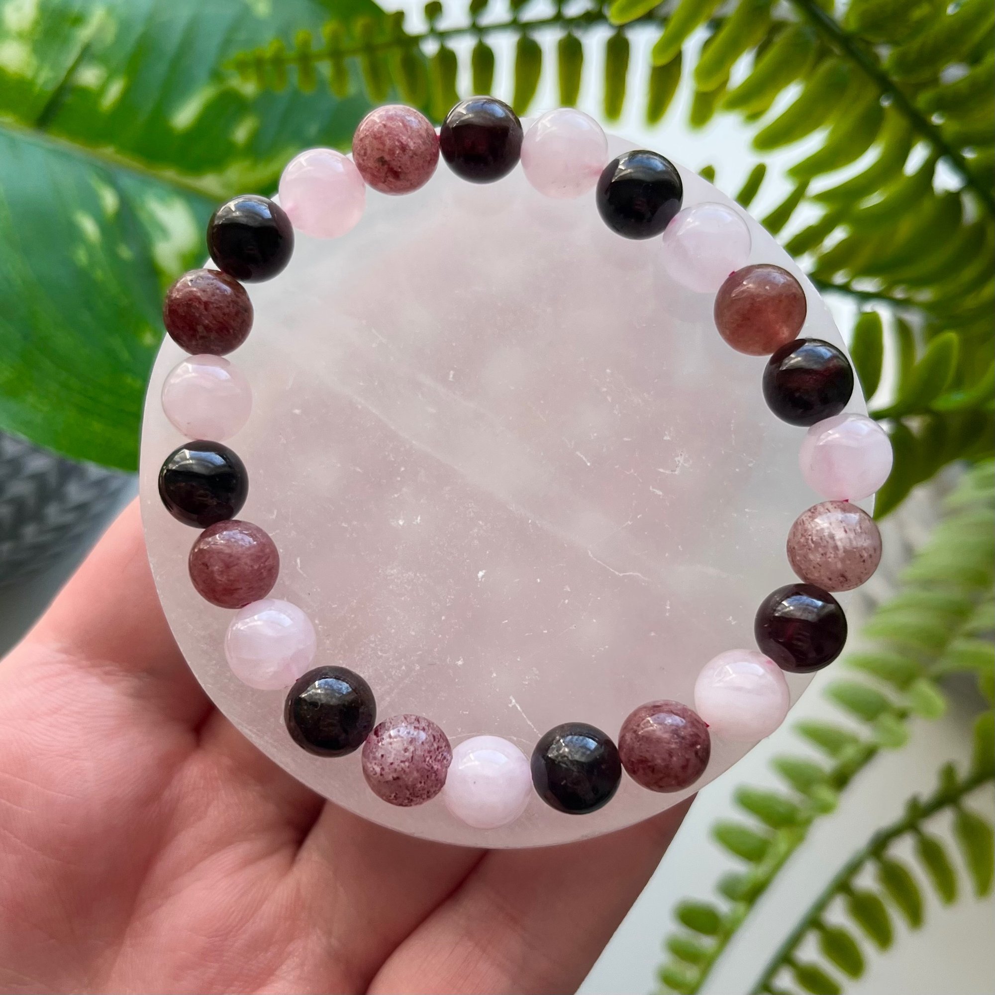 ✩ Handmade by me with real strawberry quartz, garnet, and rose quartz beads
