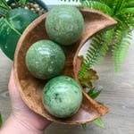 ✩ ONE high quality 60mm chrysoprase sphere. Comes with an acrylic stand to display