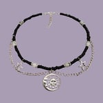 ✩ This beaded choker is handmade with real labradorite and obsidian beads