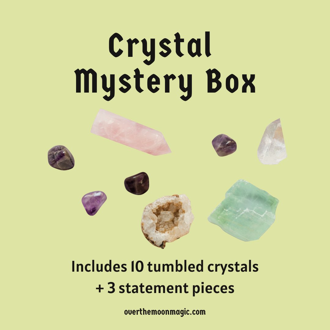 ★ Each mystery box comes with 10 small tumbled or raw pieces and 3 statement pieces (like towers, spheres, palmstones, or carvings)