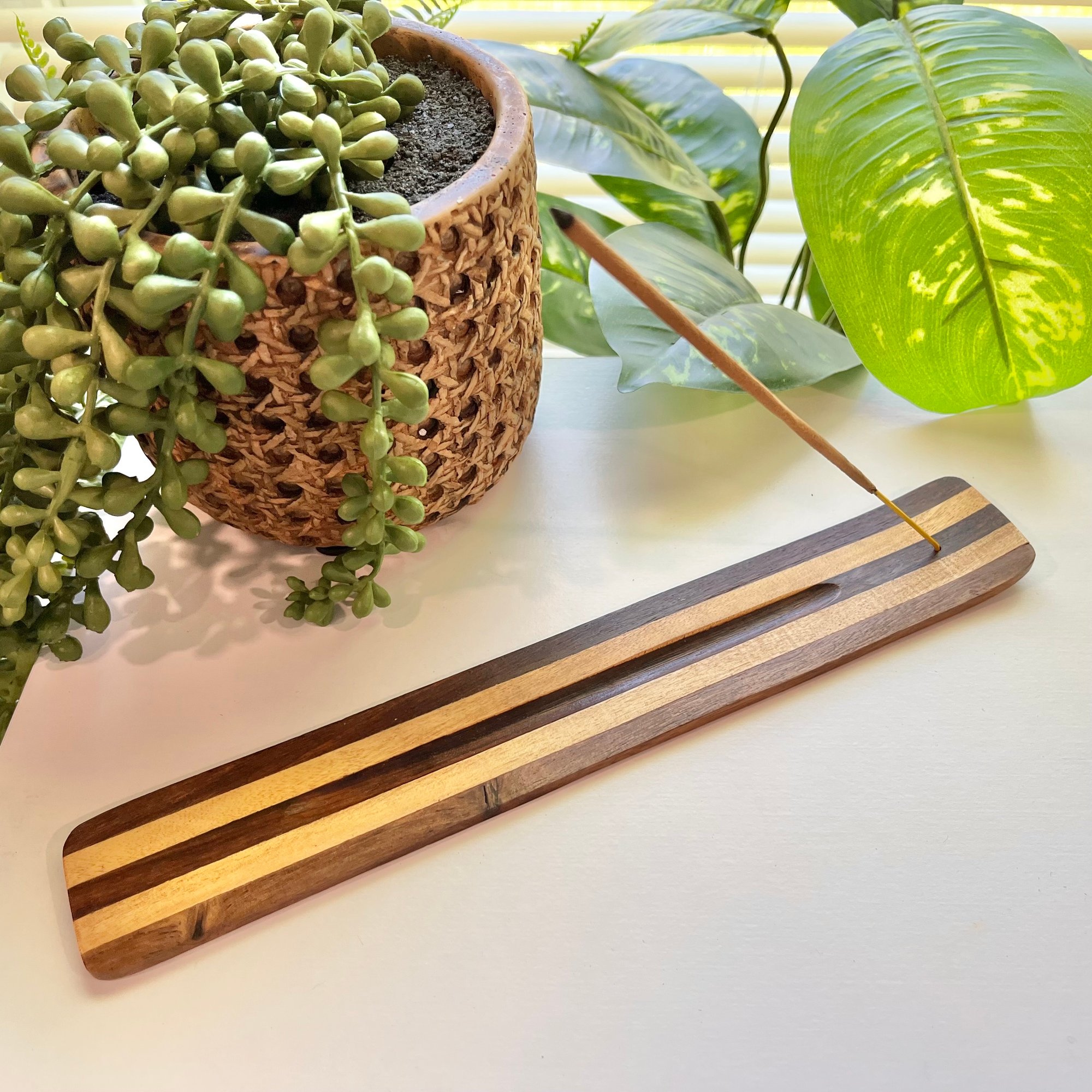 Classic wooden incense holder with golden moon and stars inlay. Approx. 12" long. Incense sold separately.